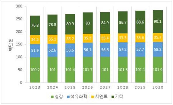 [그림 2] 산업 부문 연도별 BAU 배출량 전망[3]